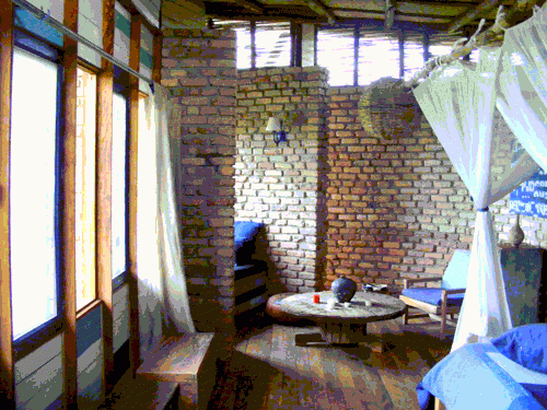 The refurbished coffeehouse is a fantastic living space. The eclectic décor provides something interesting for the eye, everywhere you look. The upholstered furniture in bold African prints lends a nice twist to European style furniture.